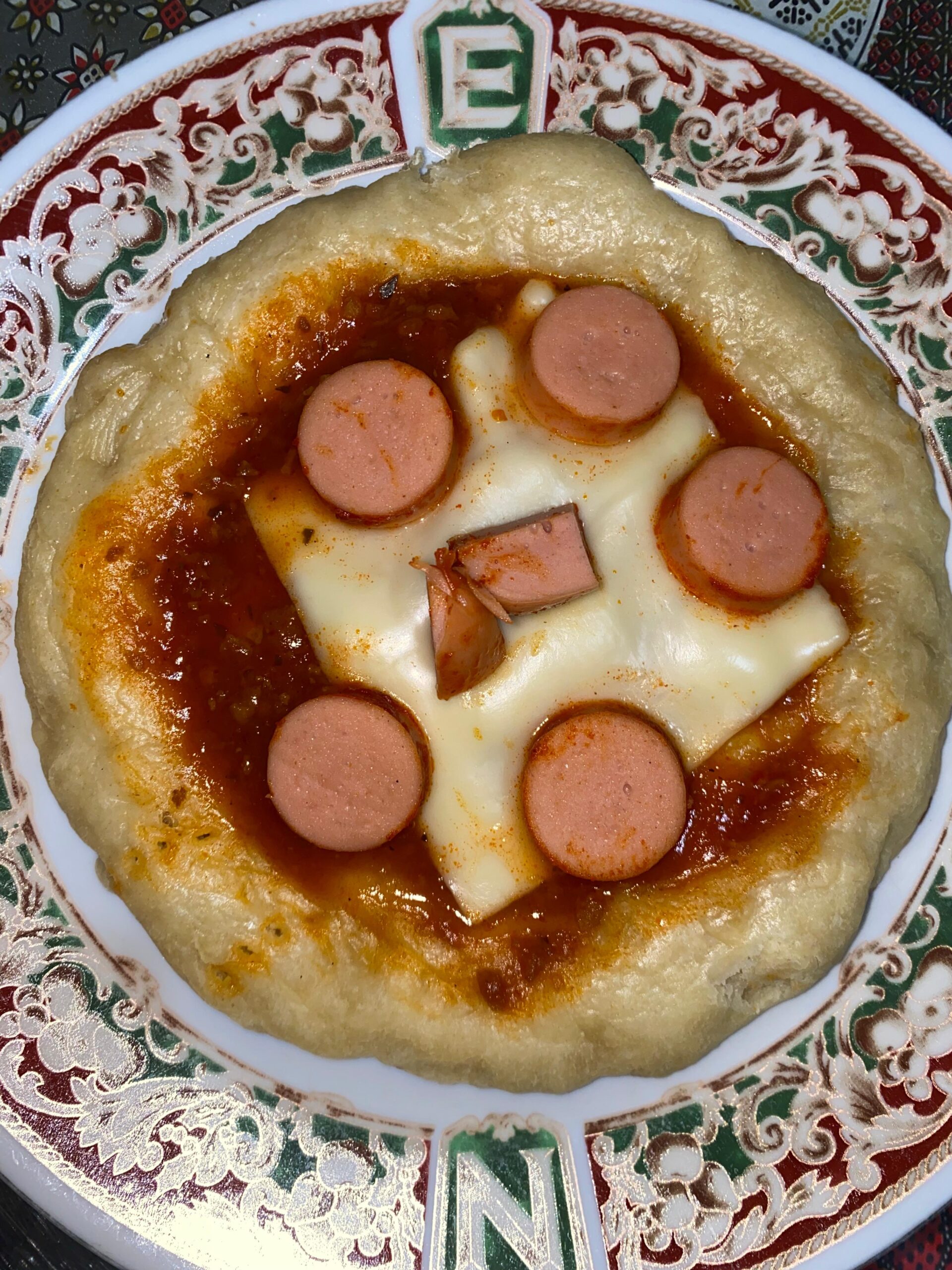 Pizza panggang rumahan dengan topping sosis dan keju yang meleleh sempurna. Simple, fresh, dan penuh rasa.
